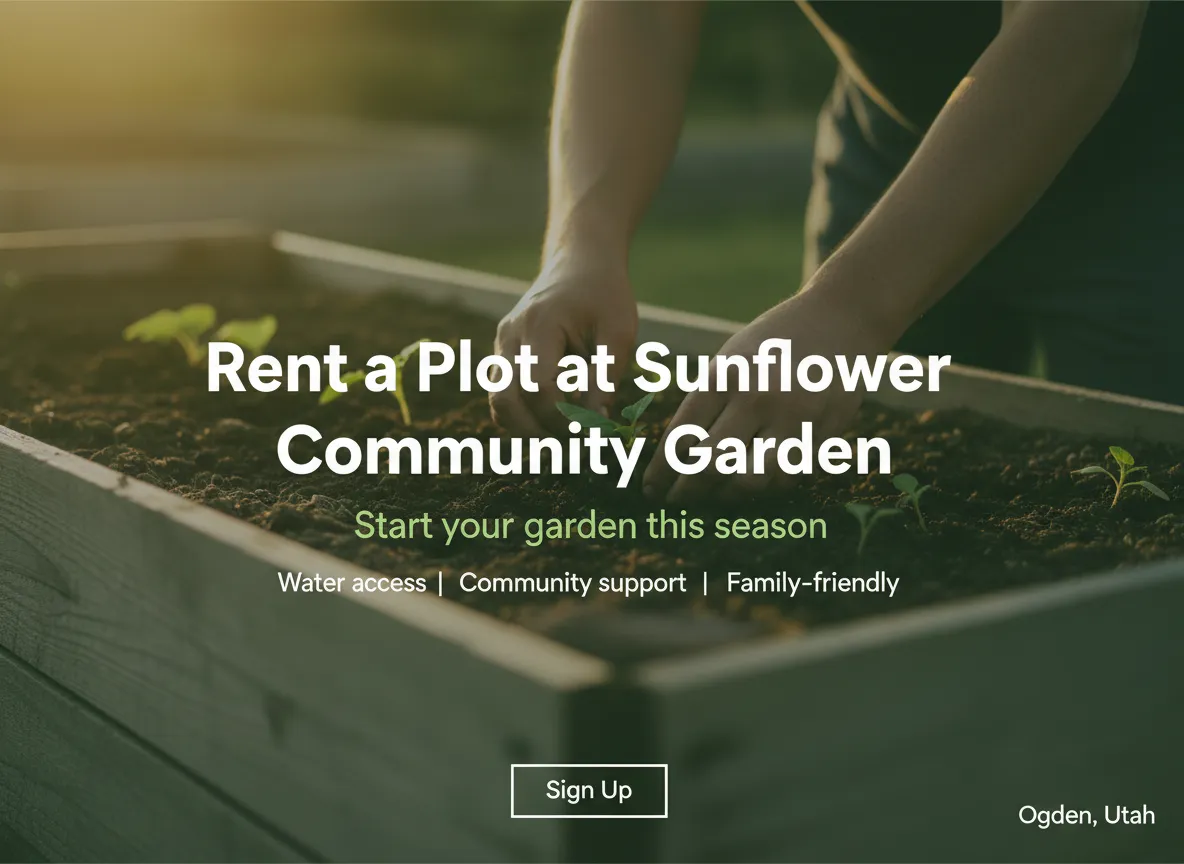 Are you passionate about gardening and community engagement? Join us in cultivating a vibrant green space right here in Ogden, Utah. Whether you're interested in volunteering your time, renting a plot to nurture your own garden oasis, or contributing to our ongoing efforts through donations, there are plenty of ways to make a meaningful impact.